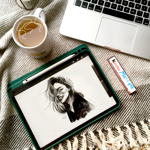 Je travaille principalement sur iPad Pro avec Procreate pour la création de mes illu numériques.